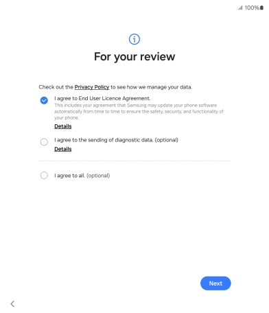 Press the fields to accept the terms and conditions.