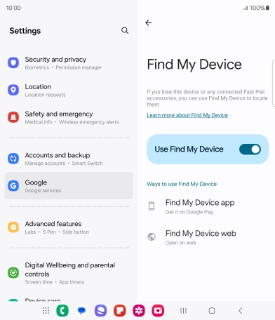 Select settings for Find My Device on your Samsung Galaxy Z Fold6 Android 14
