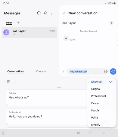 Using AI, you can change the style of writing in your messages. The function works with all of Samsung's own apps as well as message and social media apps.