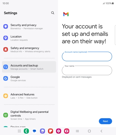 Press the field below "Account name (optional)" and key in the required name.