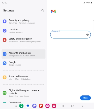 Press the field below "Password" and key in the password for your email account.
