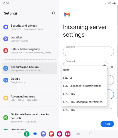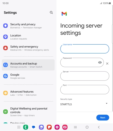 Press the field below "Server" and key in the name of your email provider's incoming server.