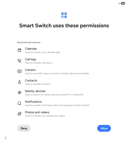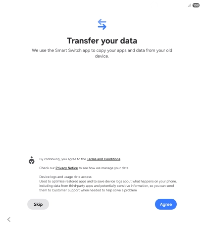 You can transfer the contents of another phone to your phone when it's activated for the first time and after a factory reset. When this screen is displayed, your phone is ready to transfer content from another phone.