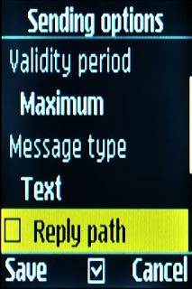 Scroll to Reply path and press the Navigation key to turn off reply via same message centre.