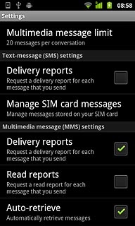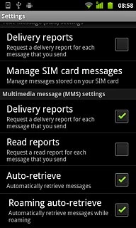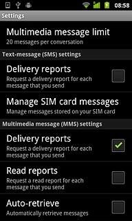 Press Delivery reports below Multimedia message (MMS) settings to turn the function on or off.