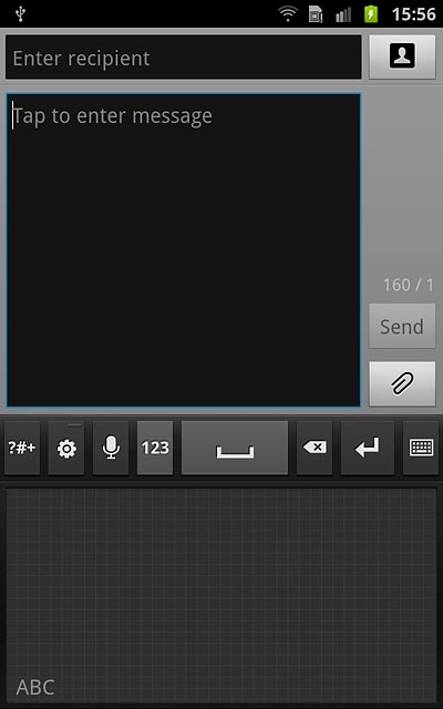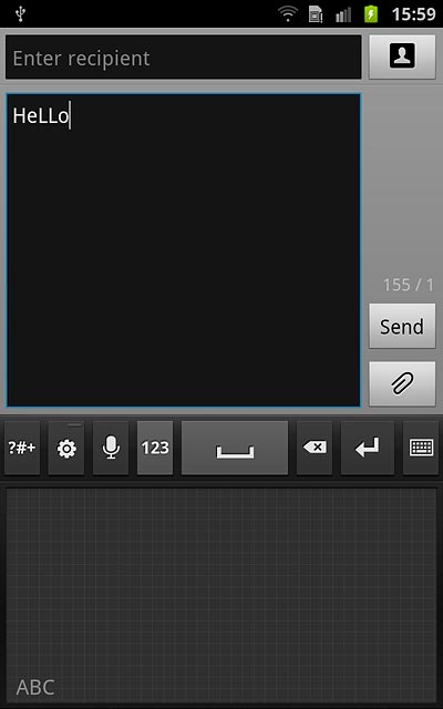 Press the symbol selection icon until ABC is displayed in the bottom left corner of the display.