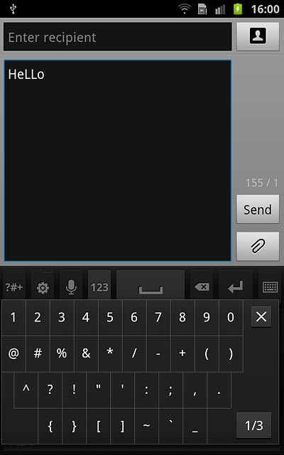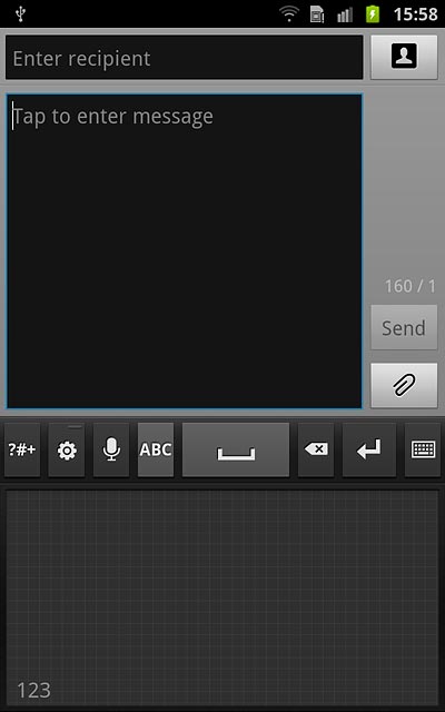 Press the symbol selection icon until 123 is displayed in the bottom left corner of the display.