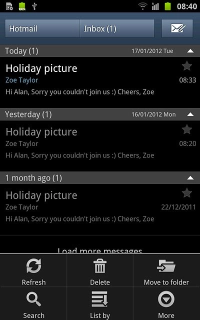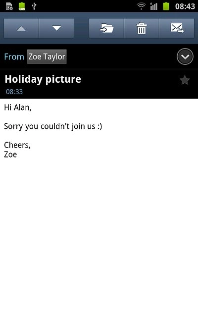 Press the required email message to read it.