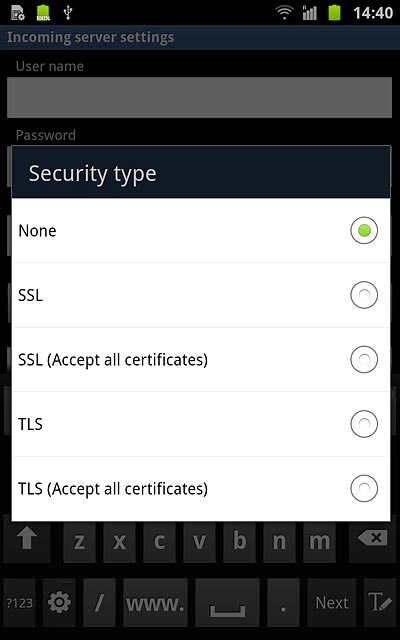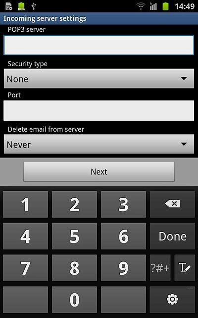Press the field below POP3 server and key in the name or IP address of your email provider's incoming server.