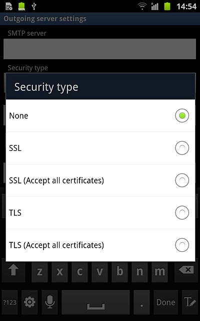 Press the field below SMTP server and key in the name or IP address of your email provider's outgoing server.