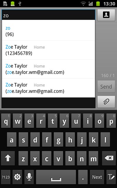 Key in the first letters of the required contact.