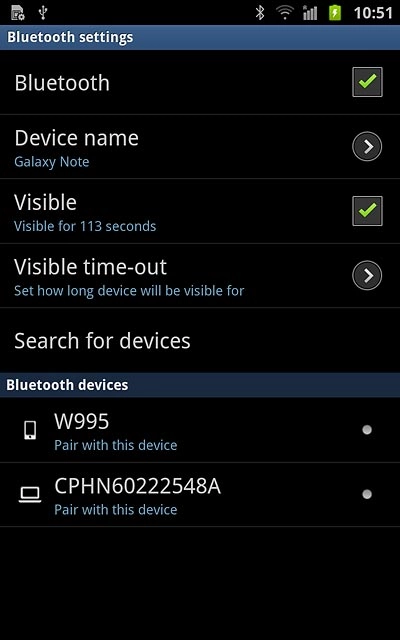 Bluetooth visibility is automatically turned off after two minutes.