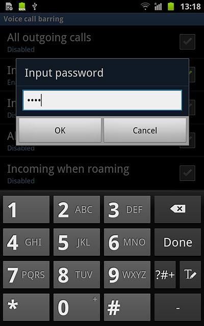 Key in your barring password (default is 0000).
