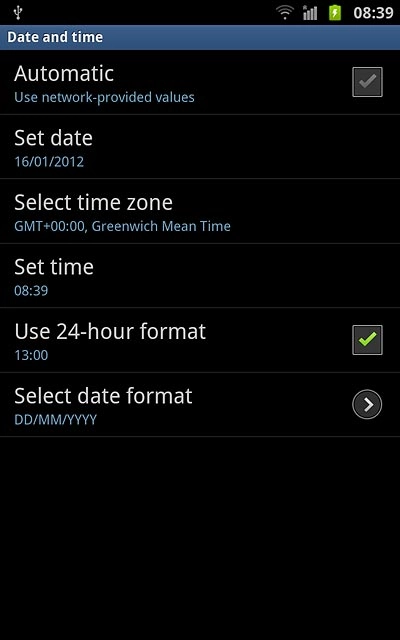 Press Automatic to turn automatic date and time update on or off.