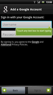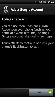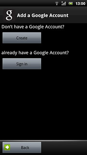 To create a new account: press Create. Follow the instructions on the display to create a new account.