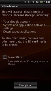 All phone data will be deleted. Data on your SIM and memory card isn't deleted.