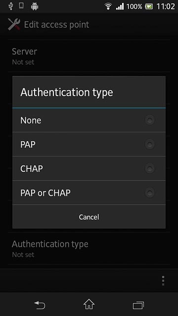 Press Authentication type.
