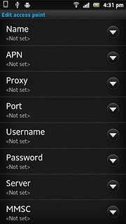 Press the field next to Vodafone Internet to fill in the field.