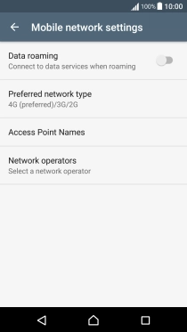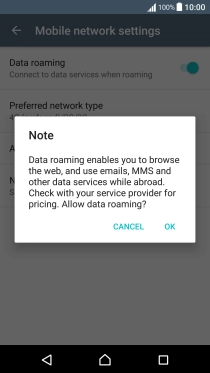 Press the indicator next to "Data roaming" to turn the function on or off.