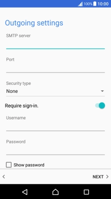 Press the field below "SMTP server" and key in the name of your email provider's outgoing server. Please note that if you can't send email messages when using your email provider's outgoing server, key in smtp.vodafone.net.au (Vodafone's outgoing server) .