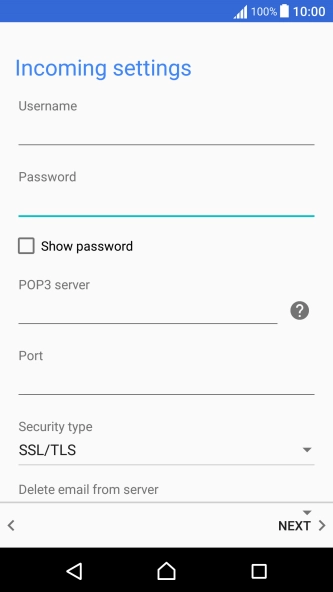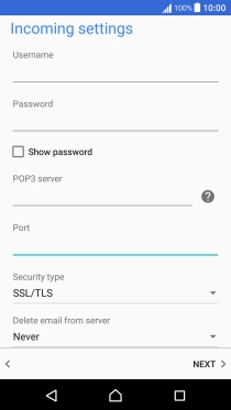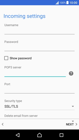 Press the field below "POP3 server" and key in the name of your email provider's incoming server.