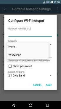 Press WPA2 PSK to password protect your Wi-Fi hotspot.