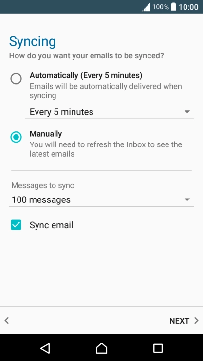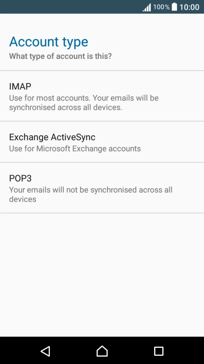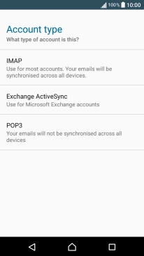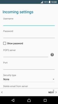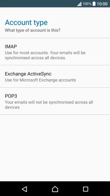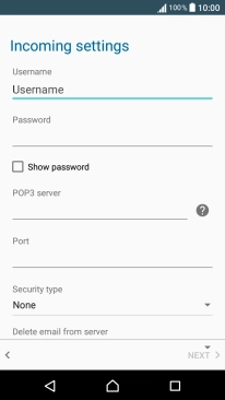 If this screen is displayed, you email account has been recognised and set up automatically. Follow the instructions on the screen to key in more information and finish setting up your phone.