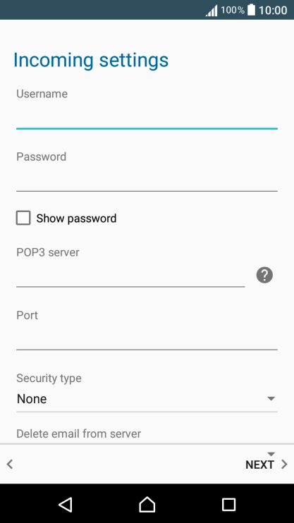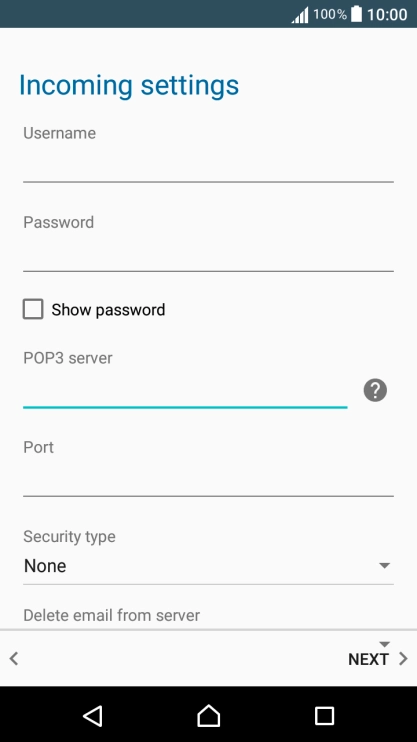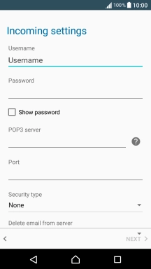 Press the field below "POP3 server" and key in the name of your email provider's incoming server.