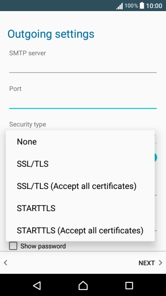 Press the field below "SMTP server" and key in the name of your email provider's outgoing server. Please note that if you can't send email messages when using your email provider's outgoing server, key in smtp.vodafone.net.au (Vodafone's outgoing server).