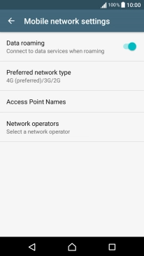Press the indicator next to "Data roaming" to turn the function on or off.