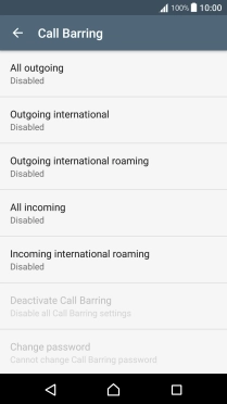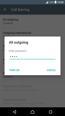 Key in your barring password and press TURN ON. The default barring password is 0000.