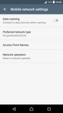 Press the indicator next to "Data roaming" to turn the function on or off.