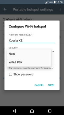 Press WPA2 PSK to password protect your Wi-Fi hotspot.