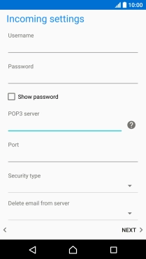 Press the field below "POP3 server" and key in the name of your email provider's incoming server.
