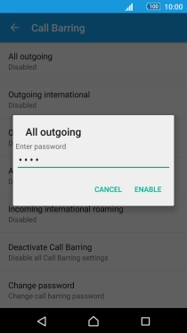 Key in your barring password and press ENABLE. The default barring password is 0000.
