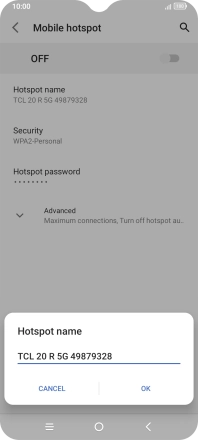 Press Hotspot name and key in the required name for the Wi-Fi hotspot.