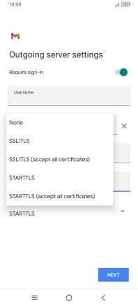 Press the field below "Username" and key in the username for your email the email provider's outgoing server.