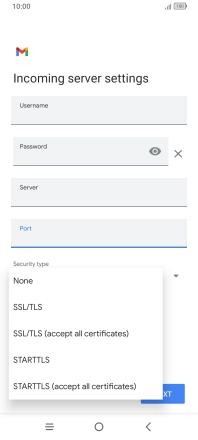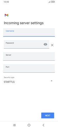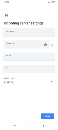 Press the field below "Server" and key in the name of your email provider's incoming server.