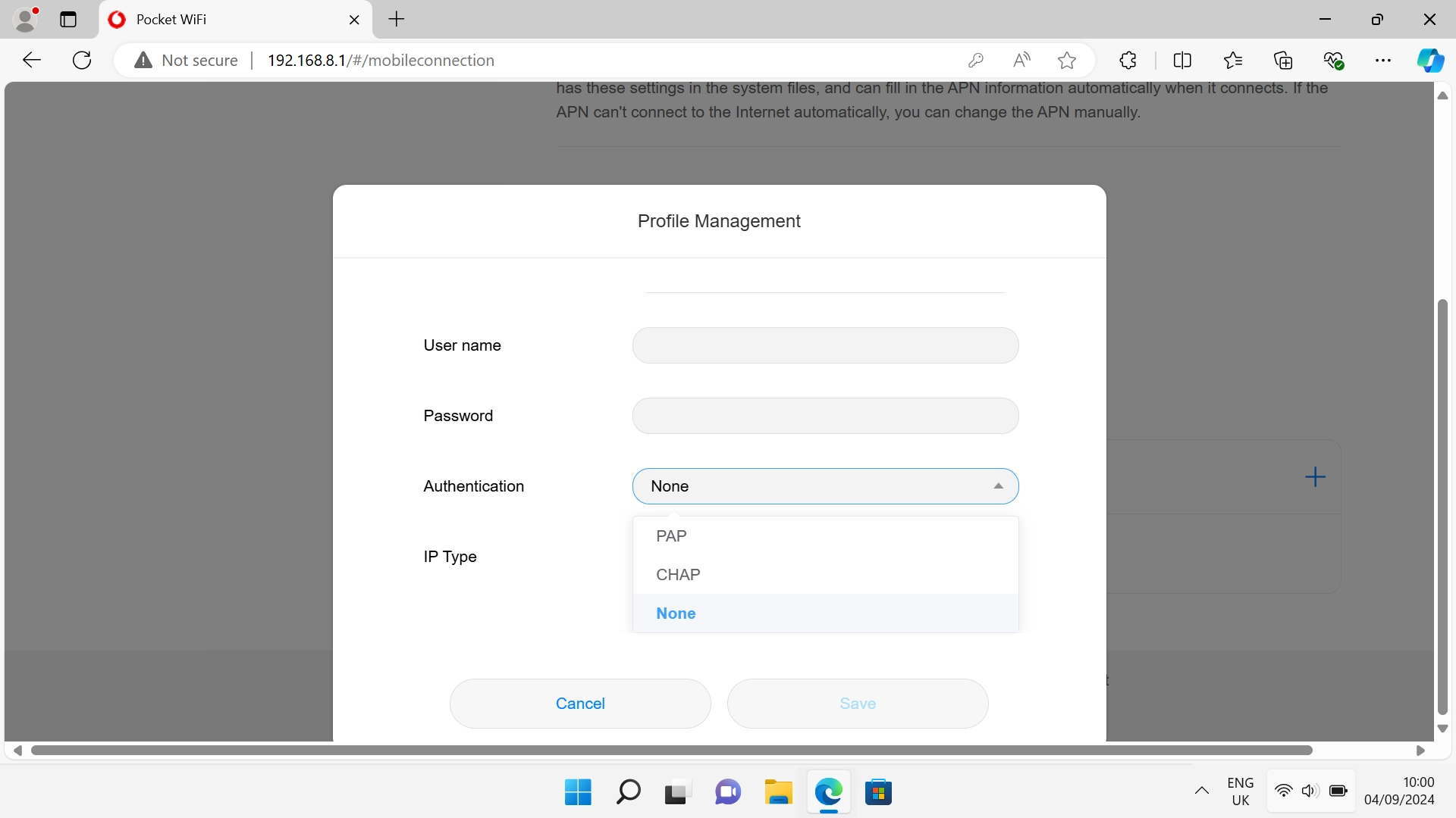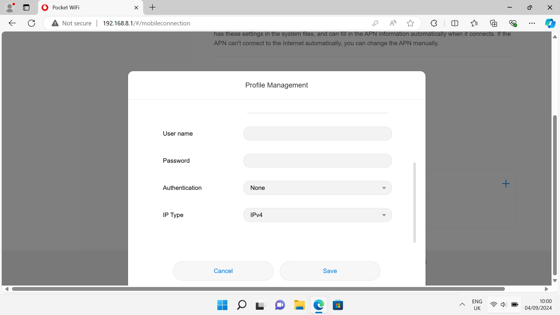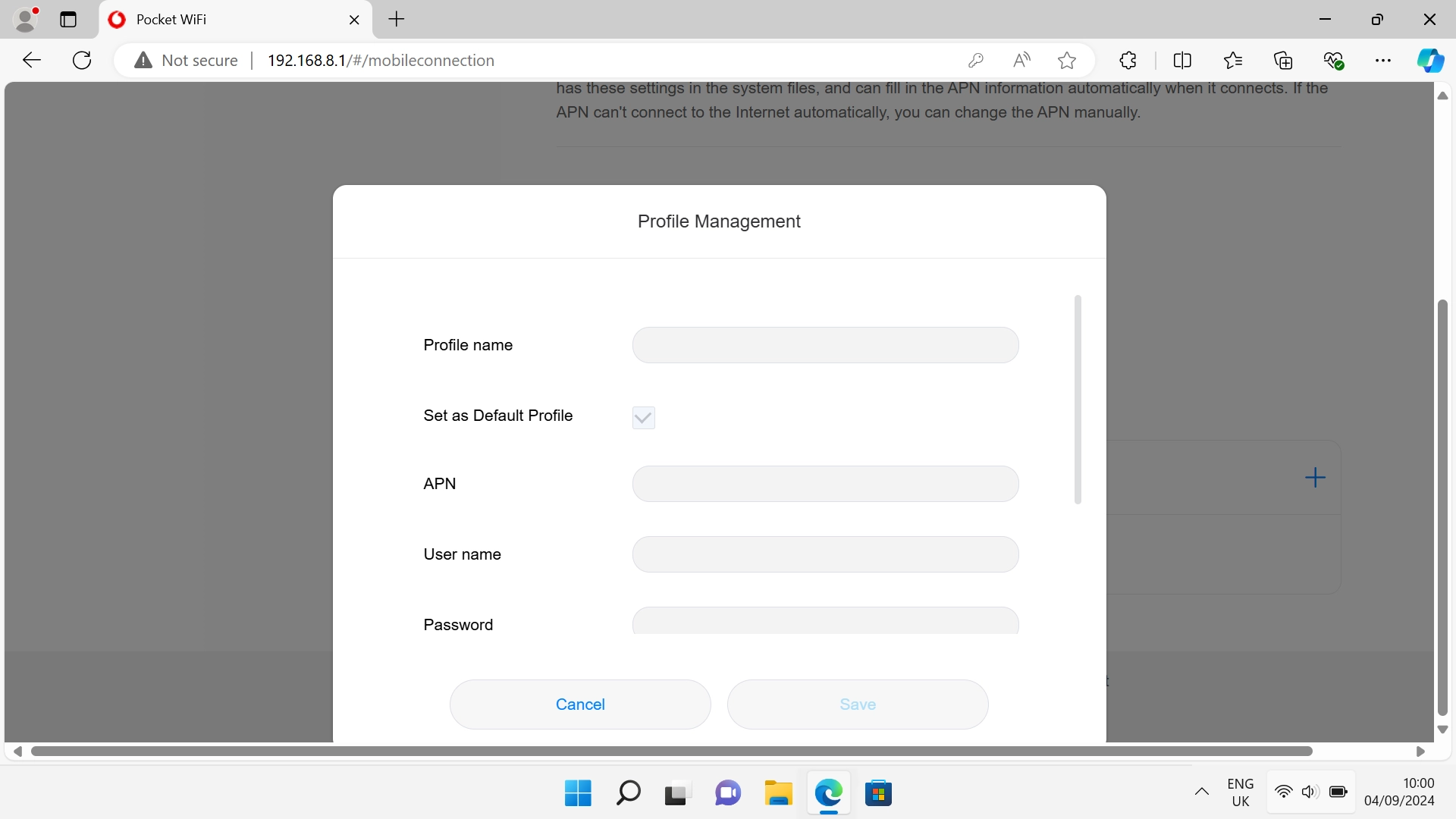 I can't use the internet connection on my Vodafone Pocket WiFi 4 4G Windows 11