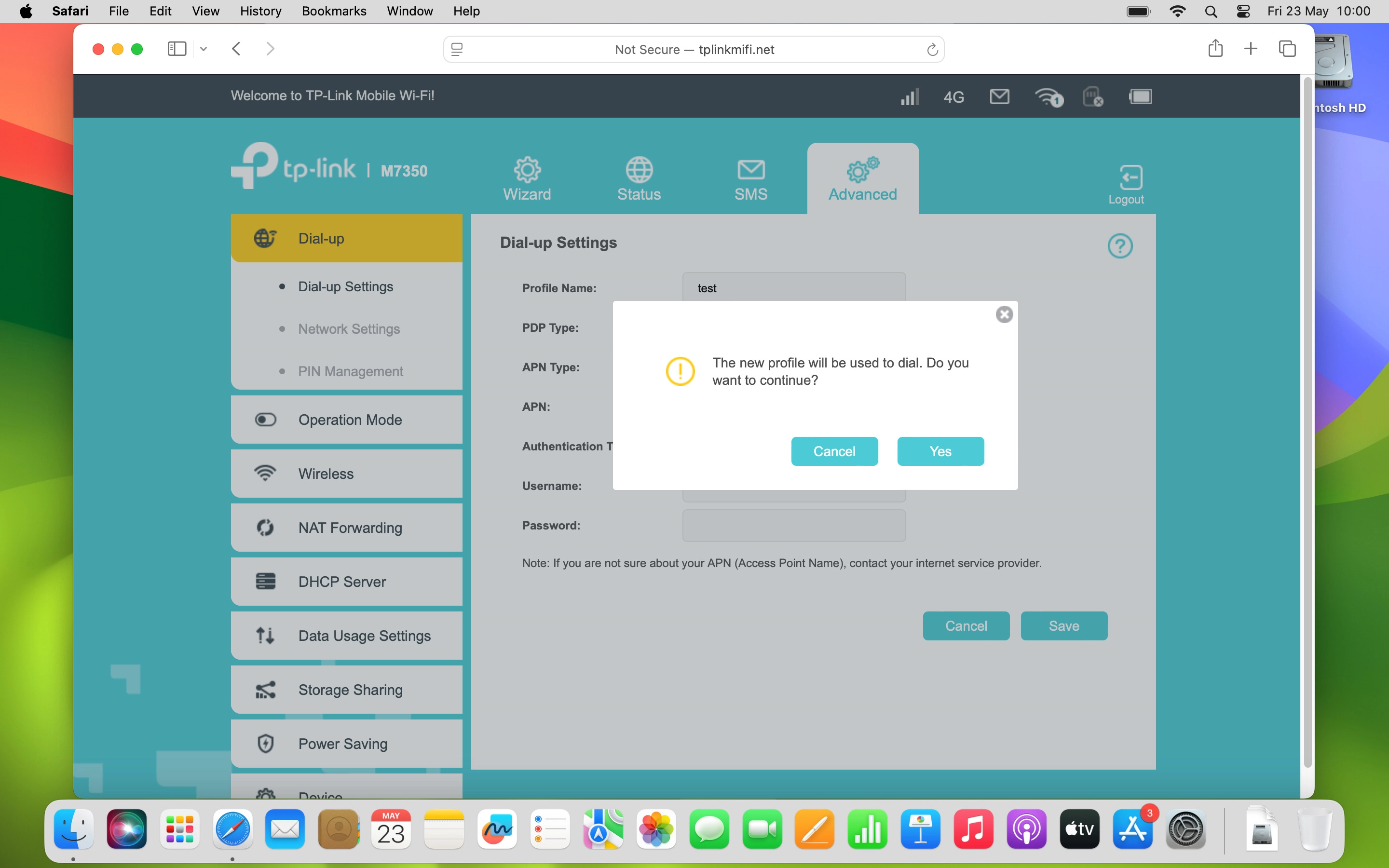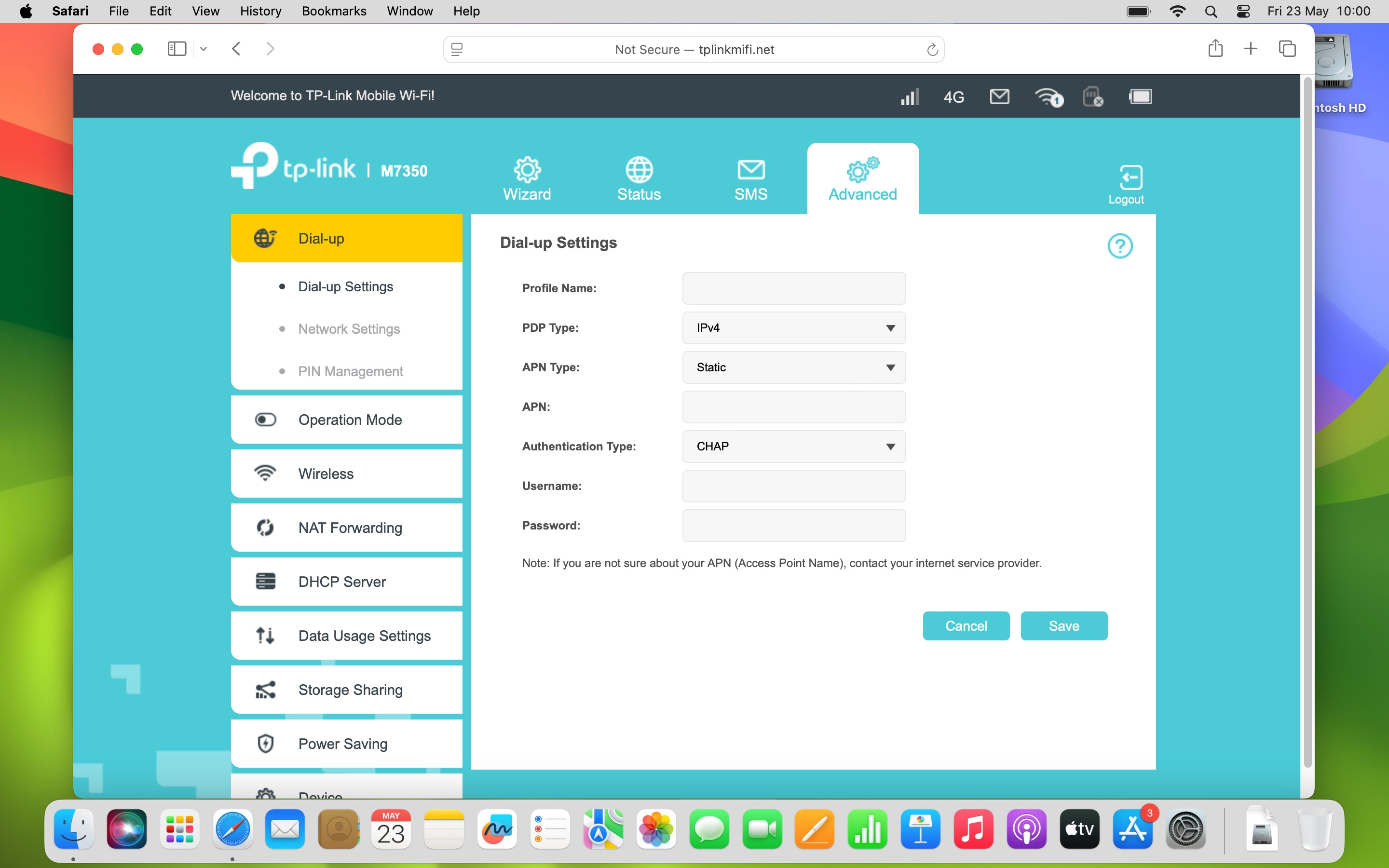 I can't use the internet connection on my Vodafone Pocket WiFi® 5 (M7350) 4G Mac OS Sonoma
