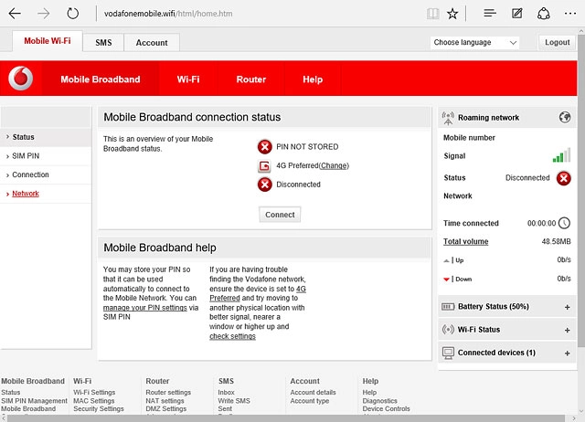 Key in http://vodafonemobile.wifiin the address bar and press Enter.