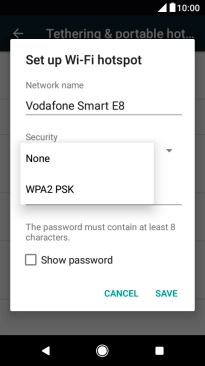 Press WPA2 PSK to password protect your Wi-Fi hotspot.