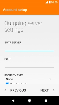Press the field below "SMTP SERVER" and key in the name or IP address of your email provider's outgoing server. Please note that if you can't send email messages when using your email provider's outgoing server, key in smtp.vodafone.net.au (Vodafone's outgoing server).