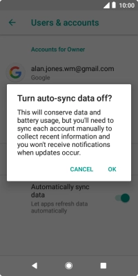 Press the indicator next to "Automatically sync data" to turn the function on or off.