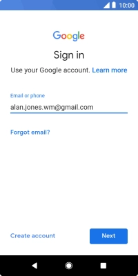 If you don't have a Google account, press Create account and follow the instructions on the screen to create an account.