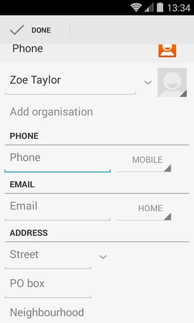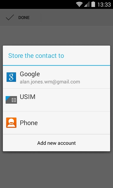 If you select Phone, the contact is created in your phone's address book.