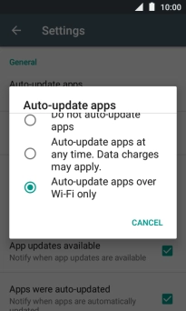 Press Auto-update apps over Wi-Fi only to turn on the function.