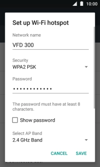 Press WPA2 PSK to password protect your Wi-Fi hotspot.