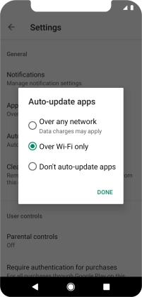 To turn on automatic update of apps using Wi-Fi, press Over Wi-Fi only.