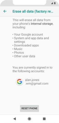 Press ERASE EVERYTHING. Wait a moment while the factory default settings are restored. Follow the instructions on the screen to set up your phone and prepare it for use.